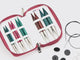 includes Cords/Accessories: 6 Black Nylon coated Stainless Steel 360° Swivel Cables with silver connectors: 2 each of 24", 32" and 40" (60cm, 80cm, 100cm), plus 8 End Caps, 4 cable keys, 1 set of cable connectors, 1 Scissors, 1 tape measure, 2 Wool Needles, 10 Locking Stitch Markers, 10 Round Stitch Markers, all in a Bordeaux fabric case.
